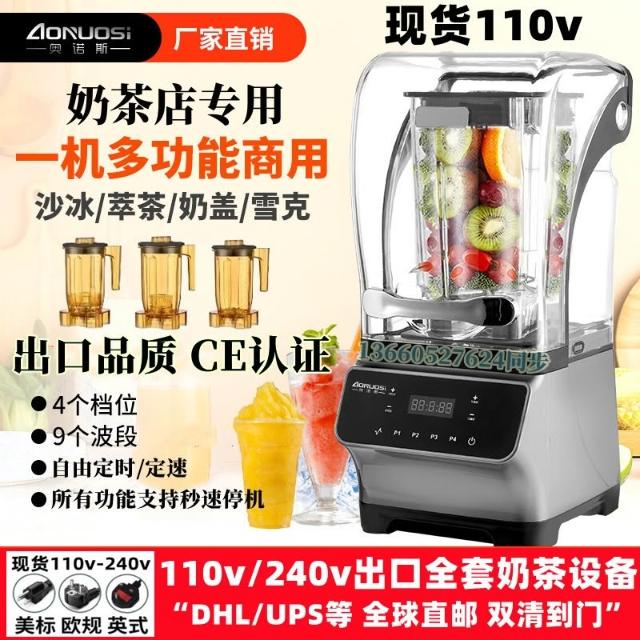 110v冰沙機商用奶茶店用設備帶罩隔靜音沙冰機刨破壁冰攪拌榨汁機