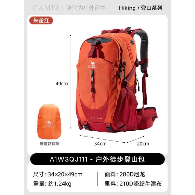 紅色戶外登山包女男士徒步爬山旅遊輕便背包旅行大容量雙肩包