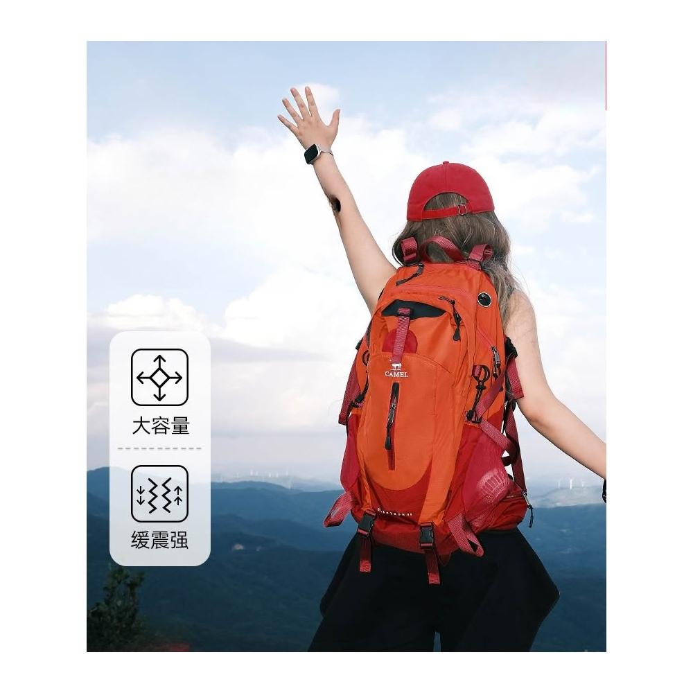 紅色戶外登山包女男士徒步爬山旅遊輕便背包旅行大容量雙肩包