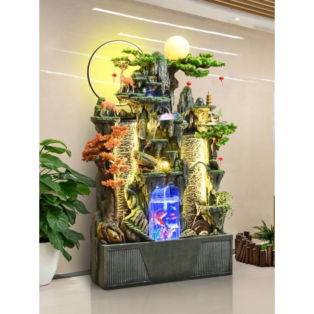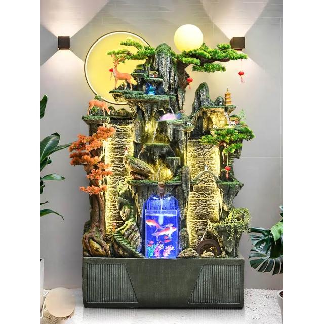 落地假山流水噴泉風車迴圈水客廳辦公室內風水輪景觀高山瀑布擺件