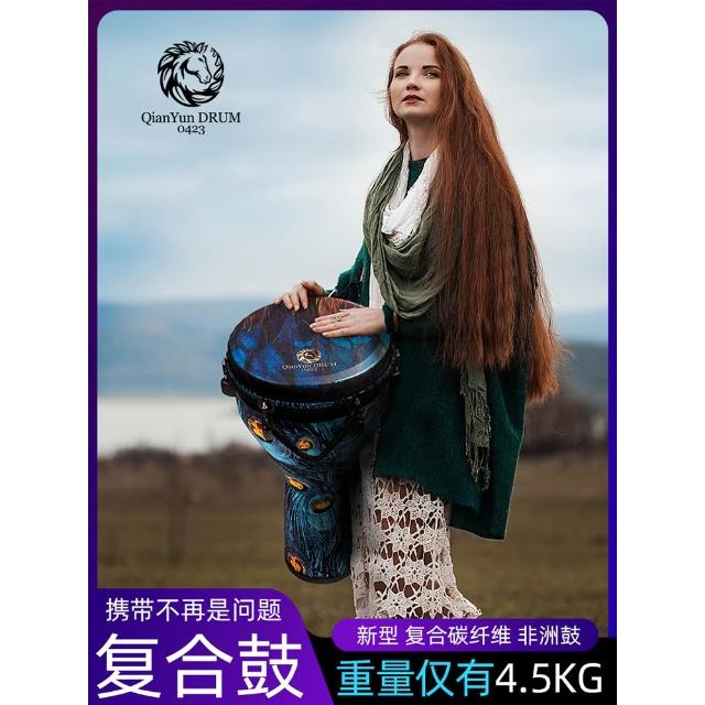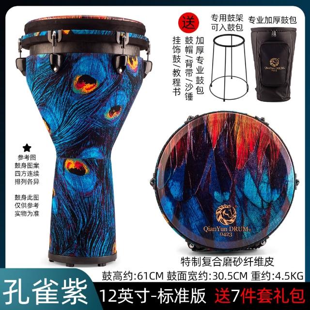 標準12寸非洲鼓孔雀紫高顏值便攜手鼓複合碳纖維樂器
