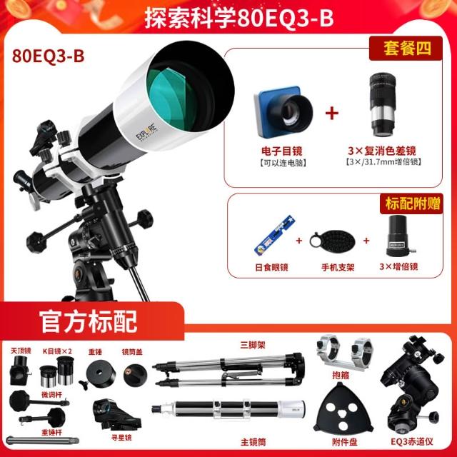 探索科學 80eq3大口徑天文望遠鏡專業級觀星高清高倍學生兒童入門