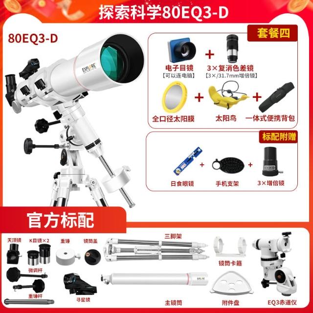 探索科學天文望遠鏡90EQ3大口徑專業深空觀星高清高倍兒童禮物