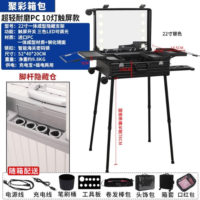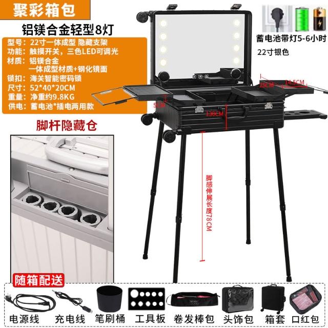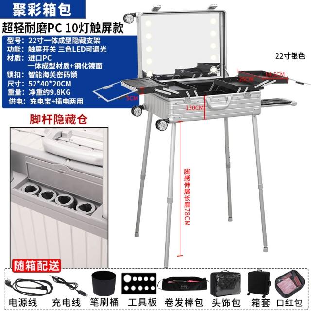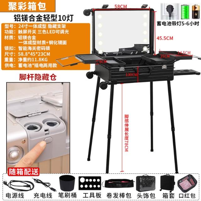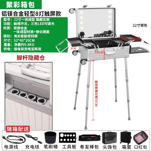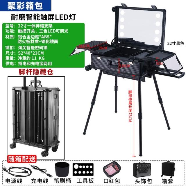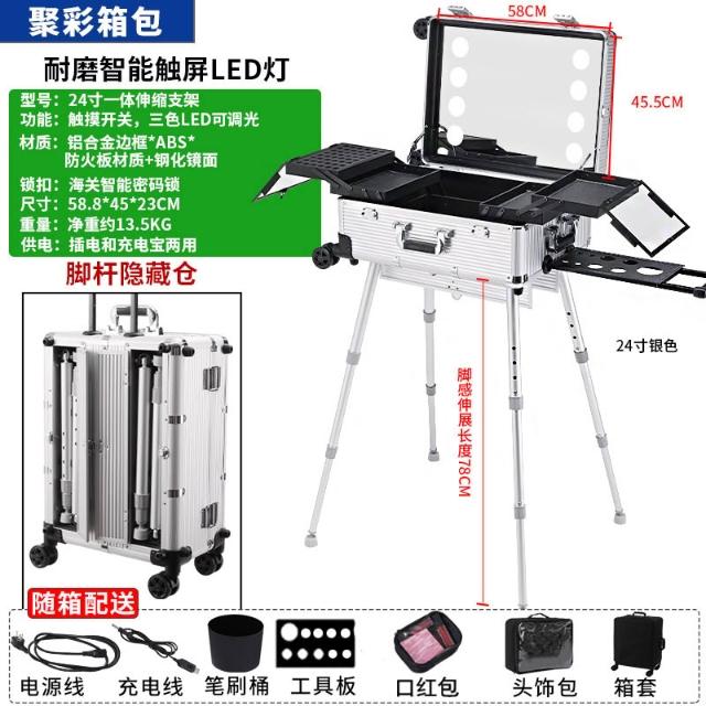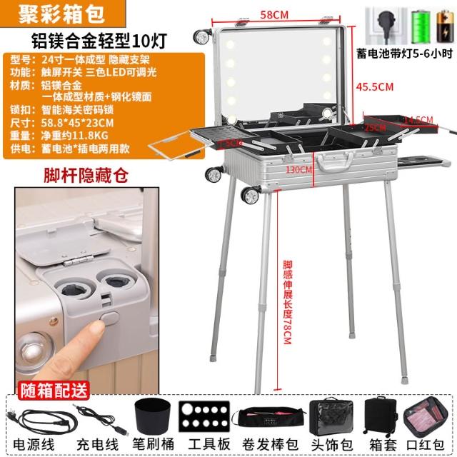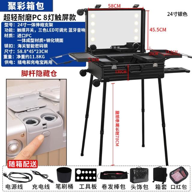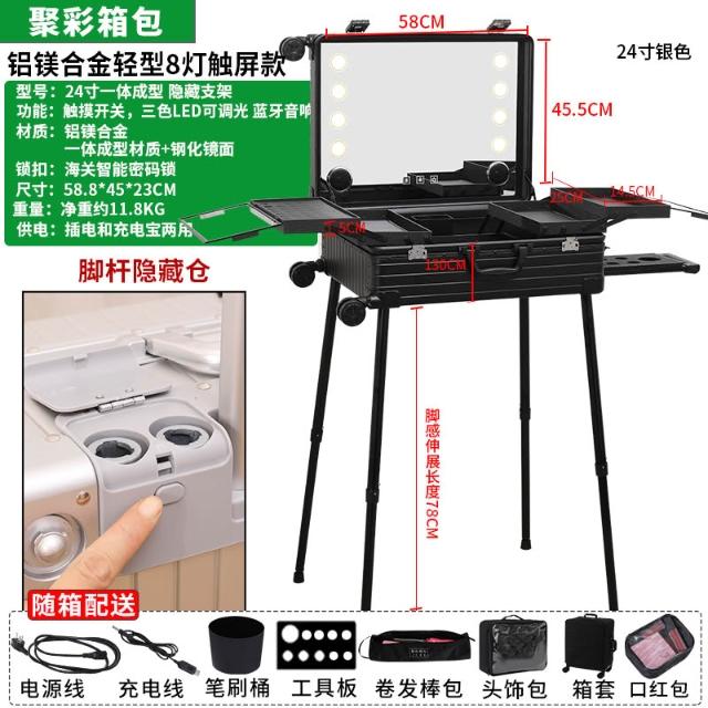 鋁鎂合金化妝箱專業跟妝師帶燈24寸大容量可調光藍牙鋼化鏡面拉杆
