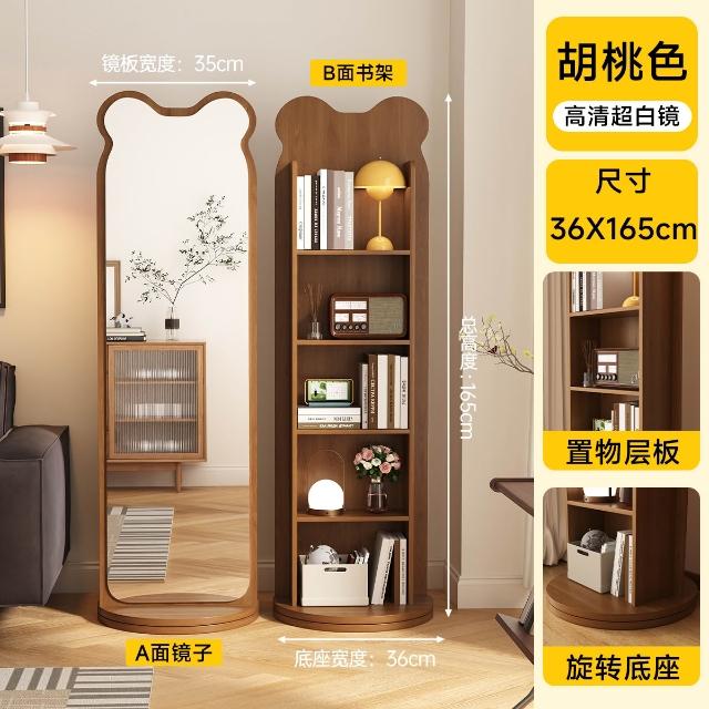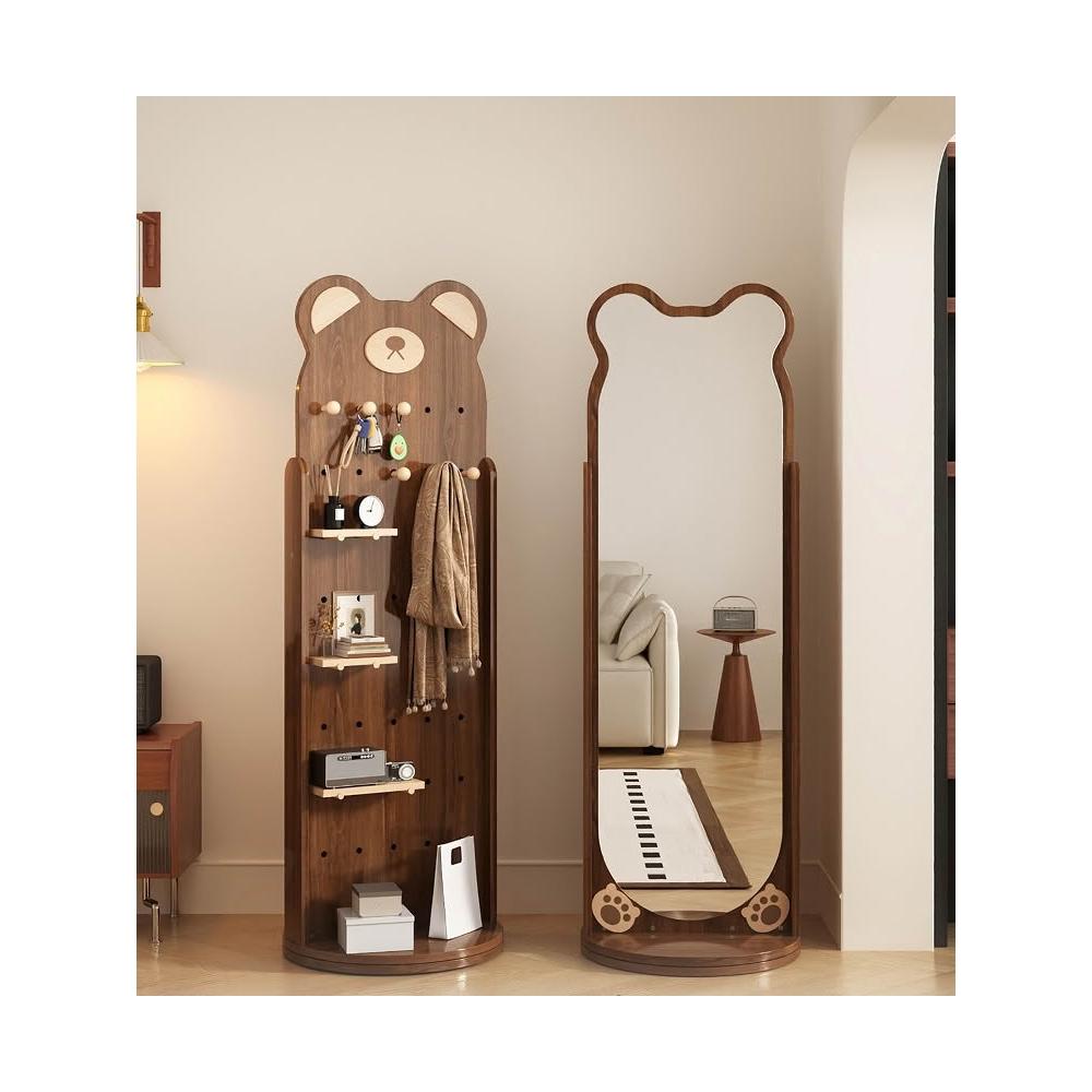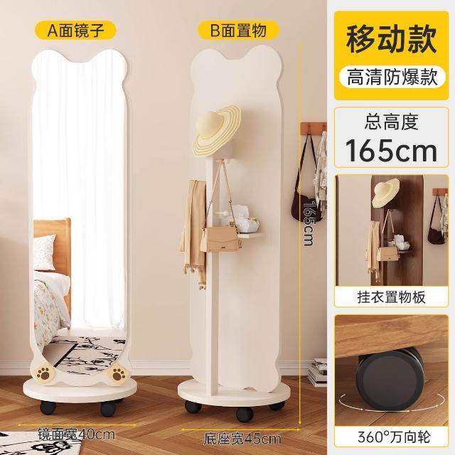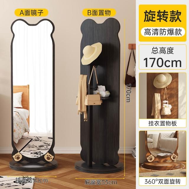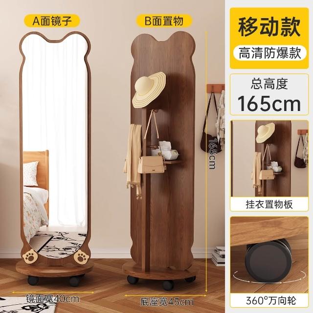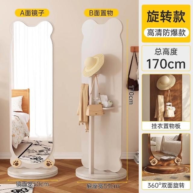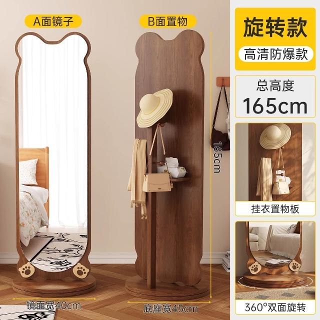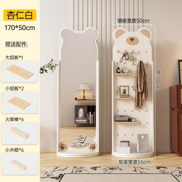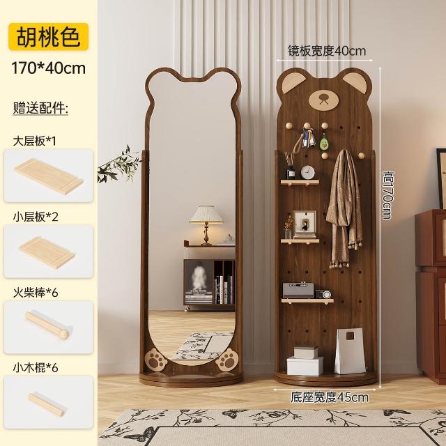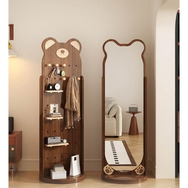 小熊洞洞板穿衣鏡可旋轉全身鏡落地鏡家用衣掛一體鏡臥室試衣鏡子