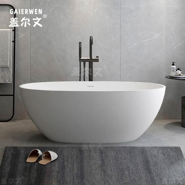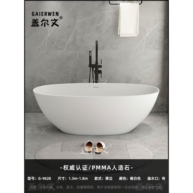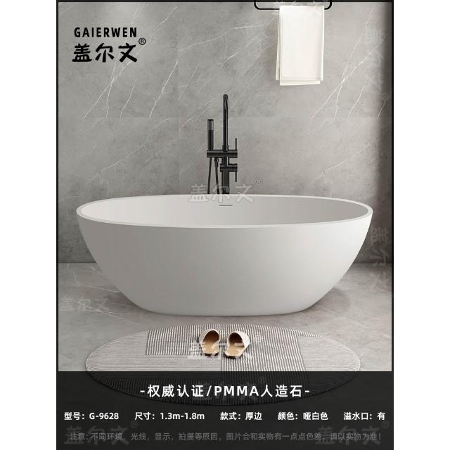 PMMA高分子人造石浴缸家用成人小戶型民宿獨立式橢圓形浴盆