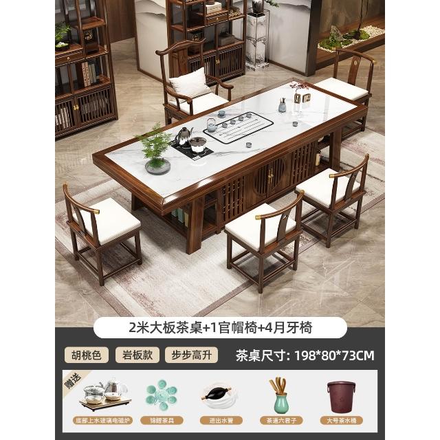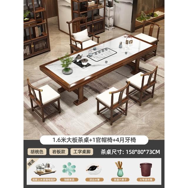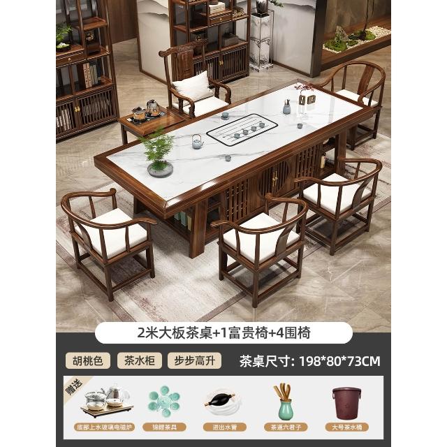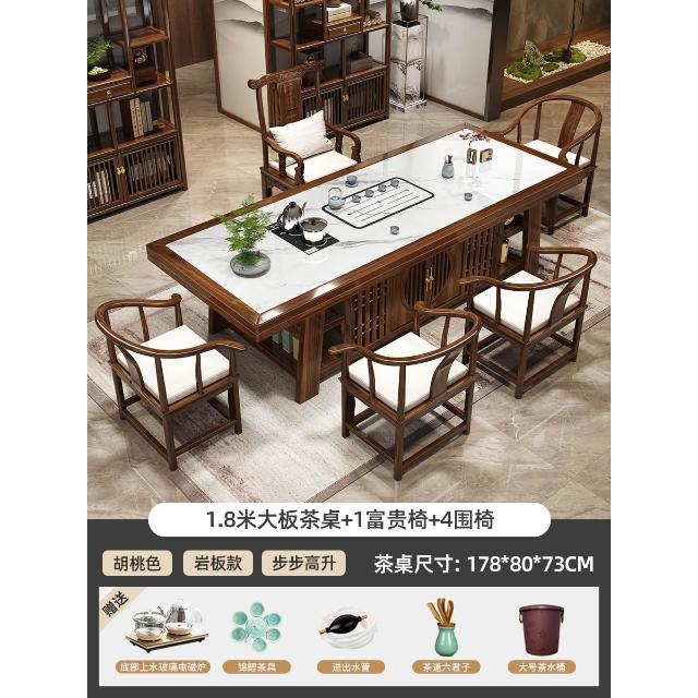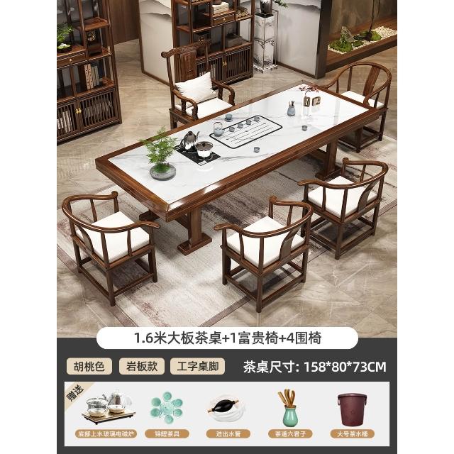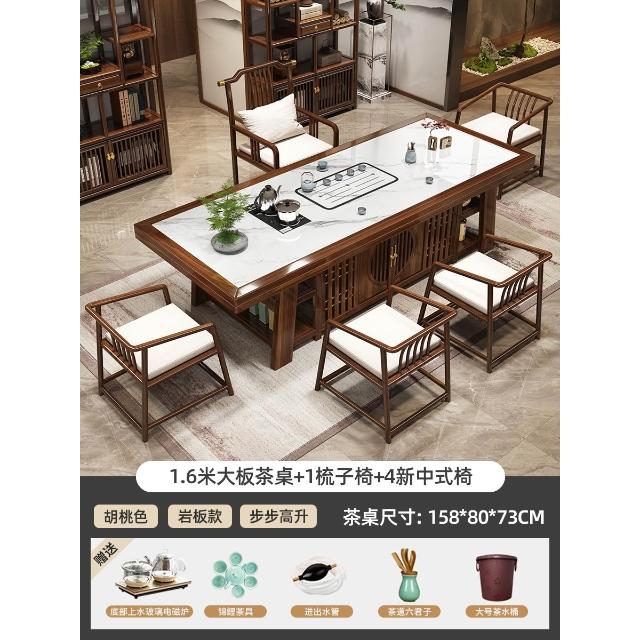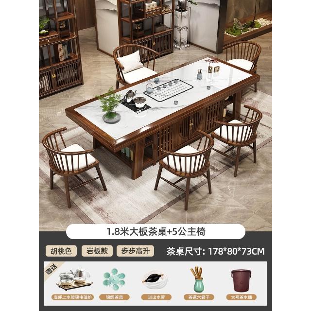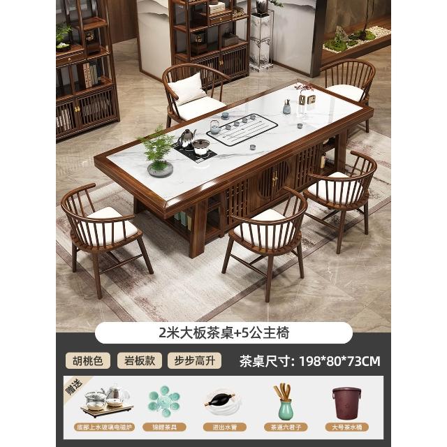 輕奢岩板實木大板茶桌椅組合新中式現代家用茶臺一桌五椅簡約茶几