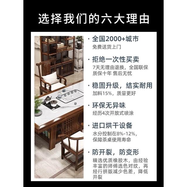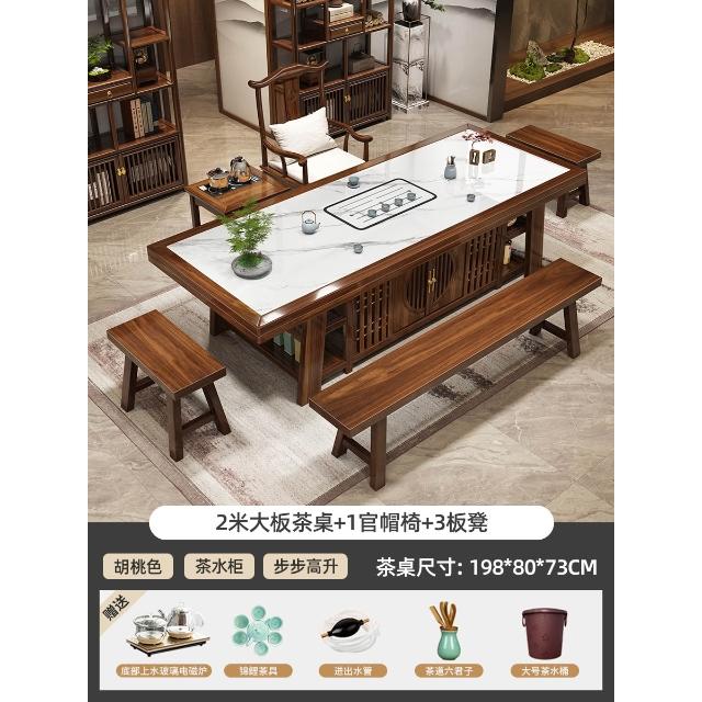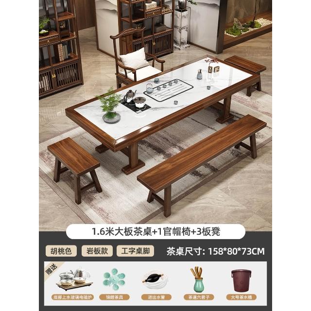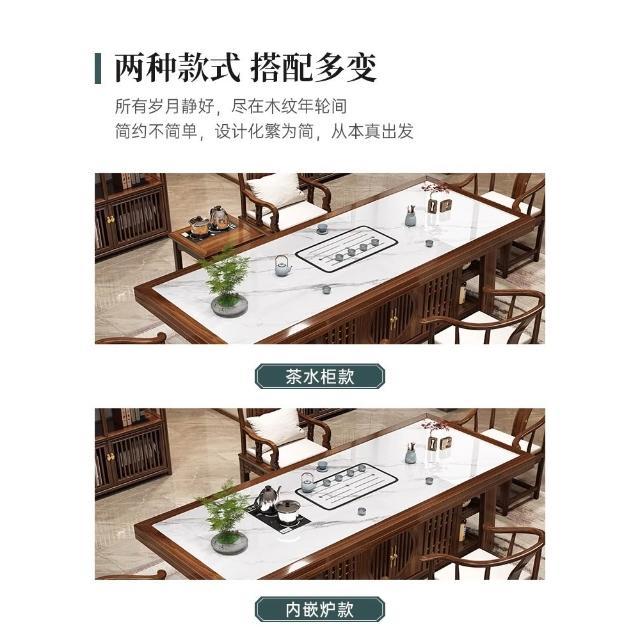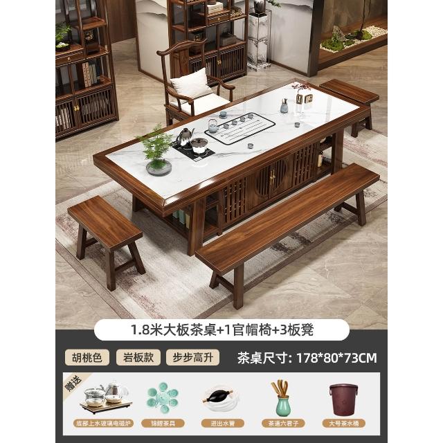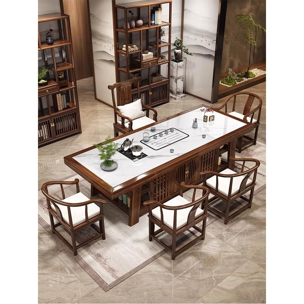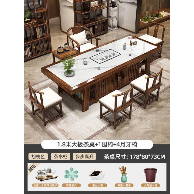 輕奢岩板實木大板茶桌椅組合新中式現代家用茶臺一桌五椅簡約茶几