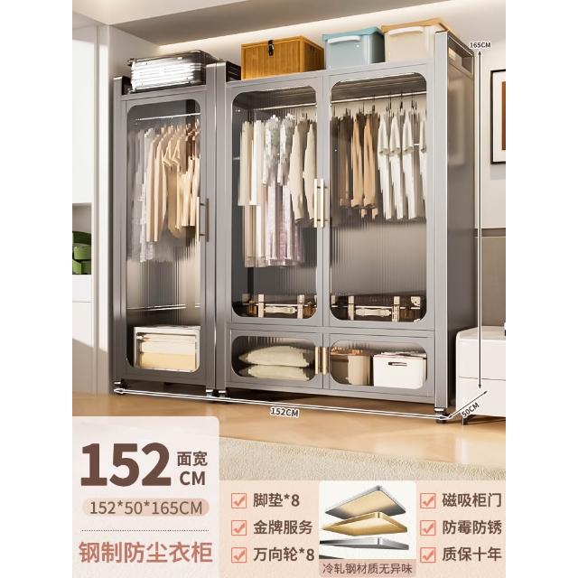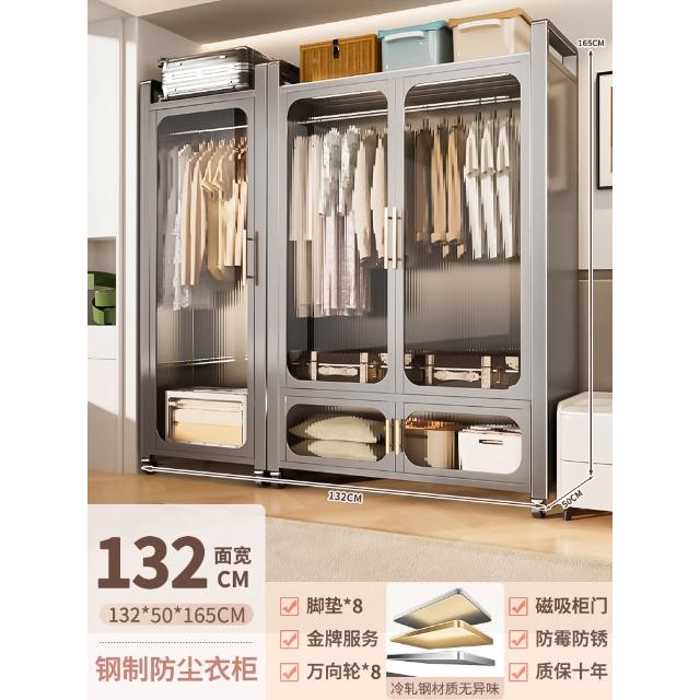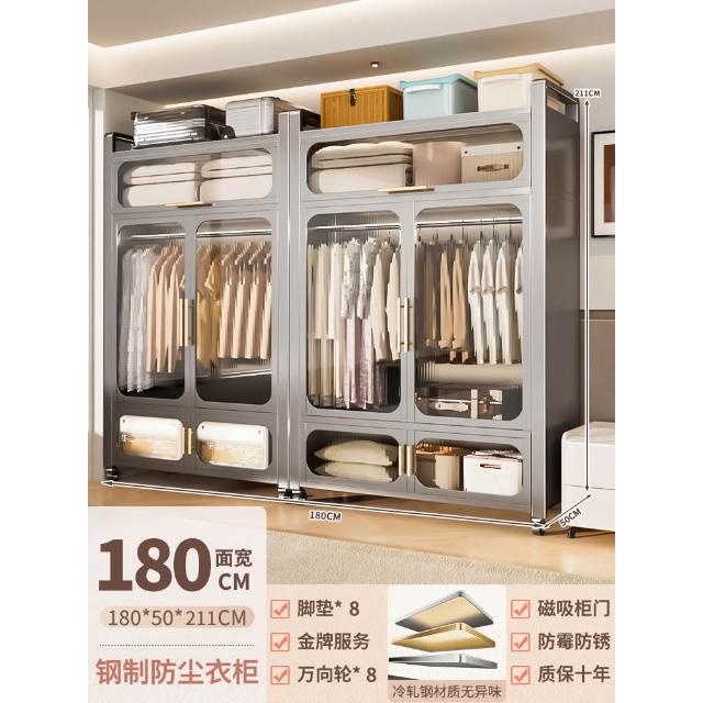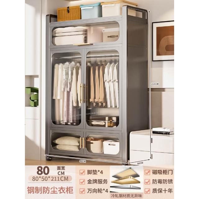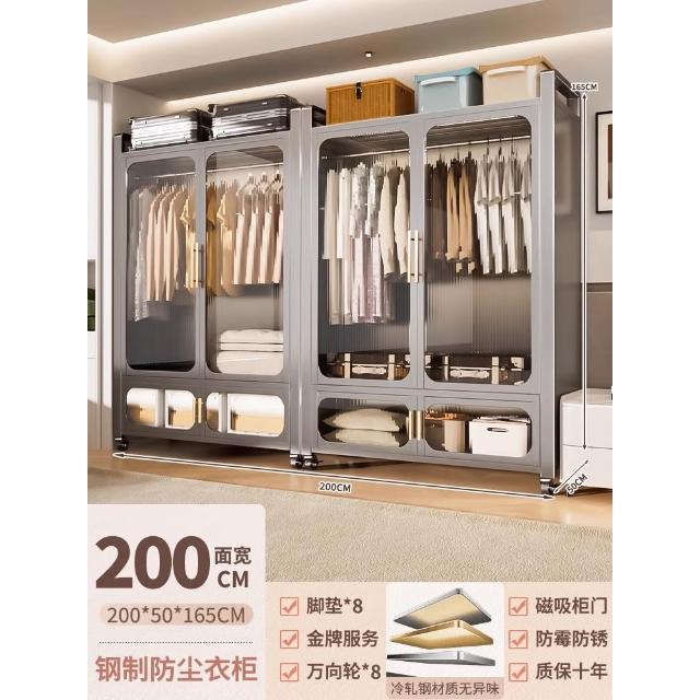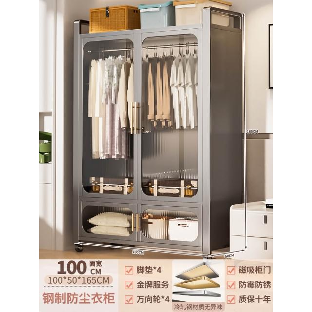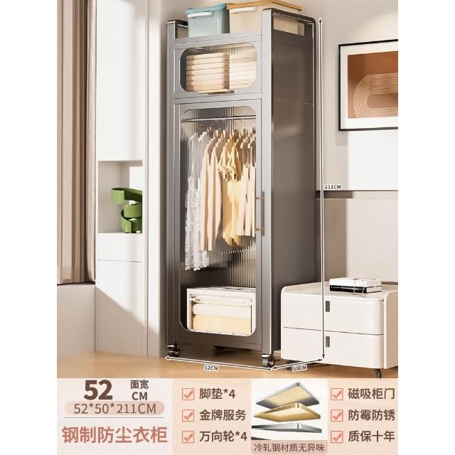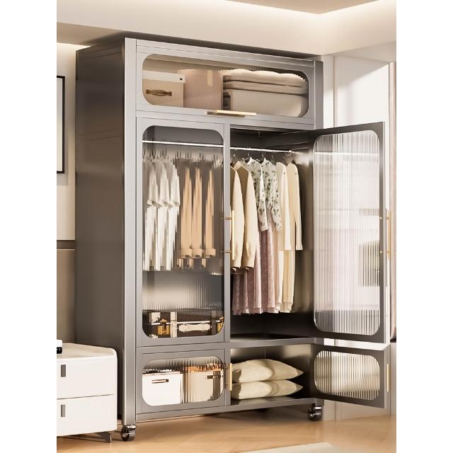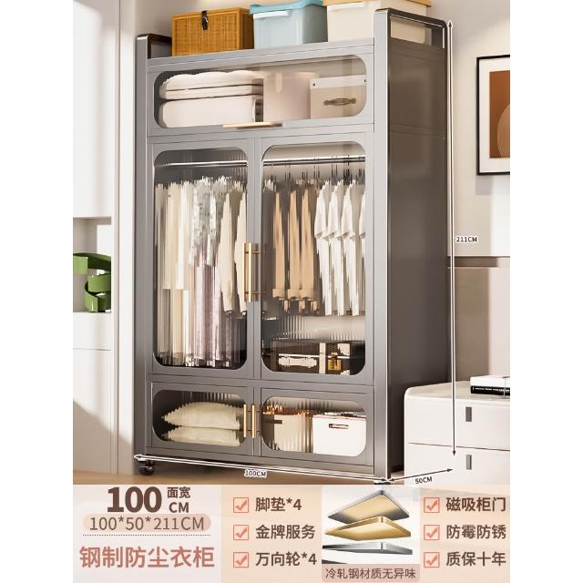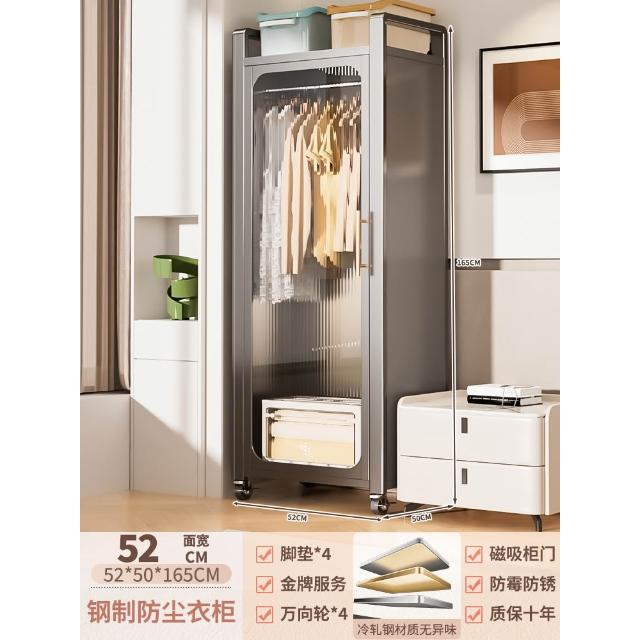 鋼制可移動衣櫃臥室家用出租房鐵藝金屬簡易鐵皮全掛式收納衣櫥櫃