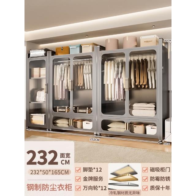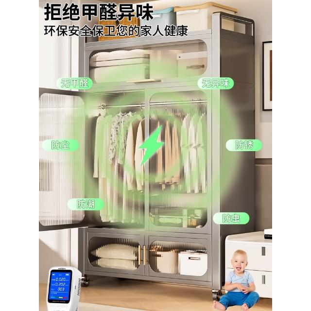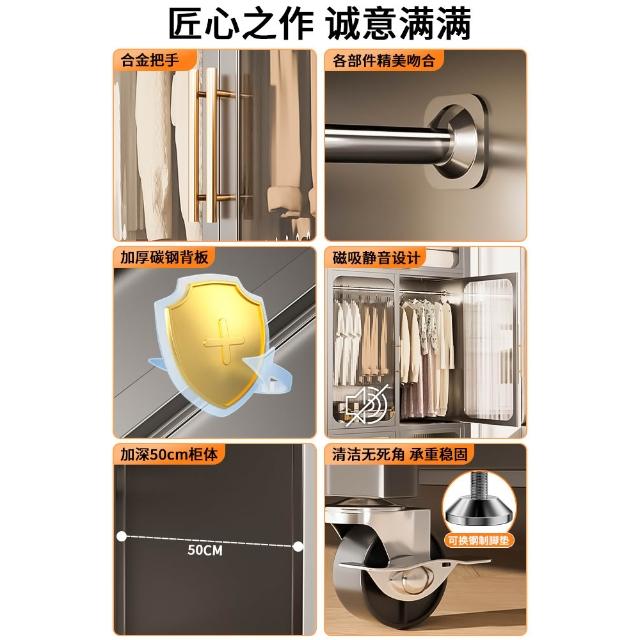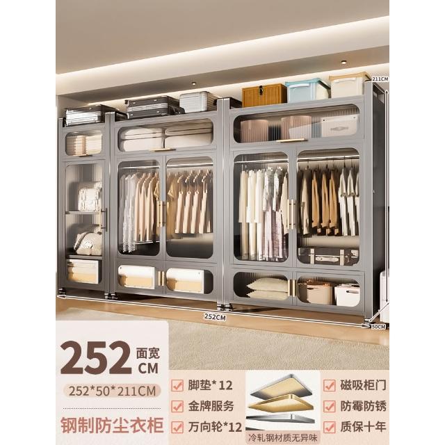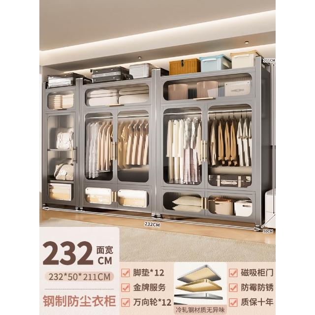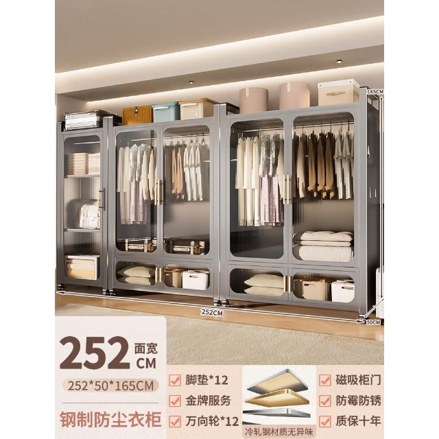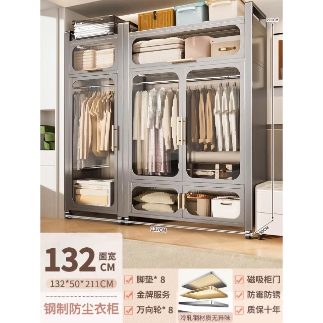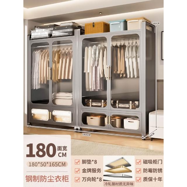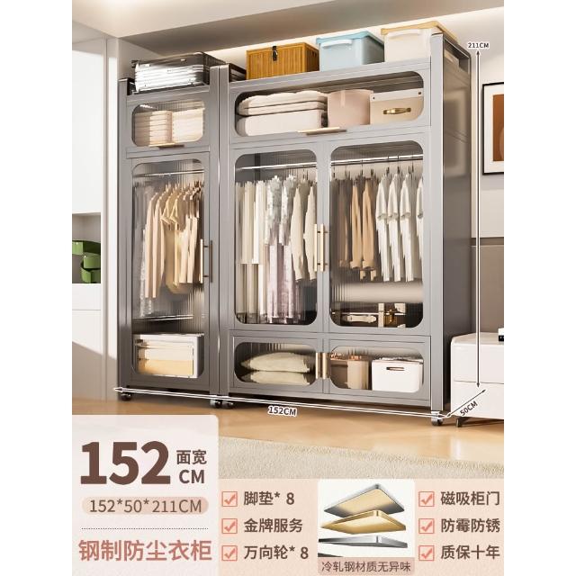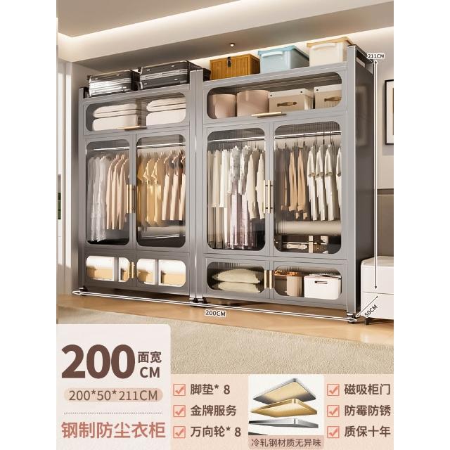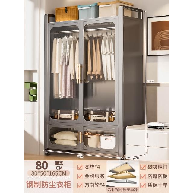 鋼制可移動衣櫃臥室家用出租房鐵藝金屬簡易鐵皮全掛式收納衣櫥櫃