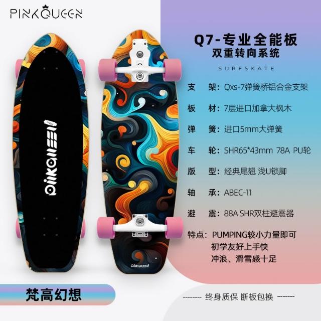 陸地衝浪板Q7滑板初學者專業兒童成人免蹬地陸沖板滑板