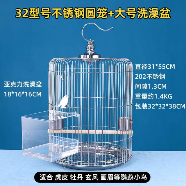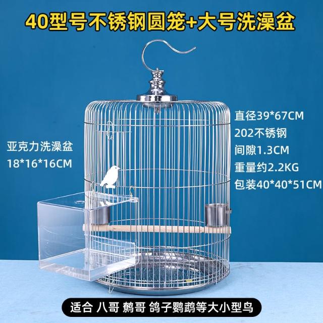 八哥專用籠不銹鋼鳥籠圓形洗澡盆鷯哥畫眉玄鳳家用鸚鵡籠