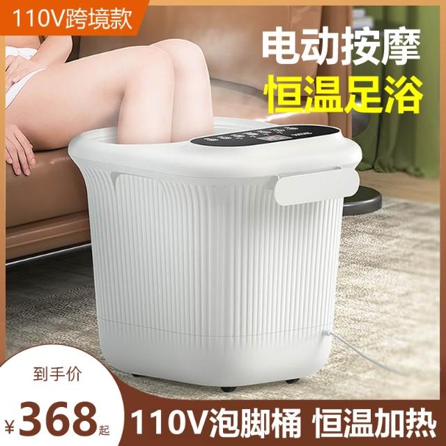 美規110V伏電動按摩泡腳桶高深足浴盆洗腳盆自動恒溫加熱家用