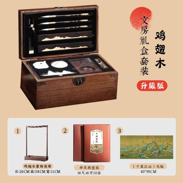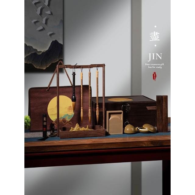 文房四寶套裝專業級高檔毛筆硯臺毛筆架墨條端硯鎮尺筆墨紙硯毛筆字書法國畫專用文房禮盒送人送禮套裝