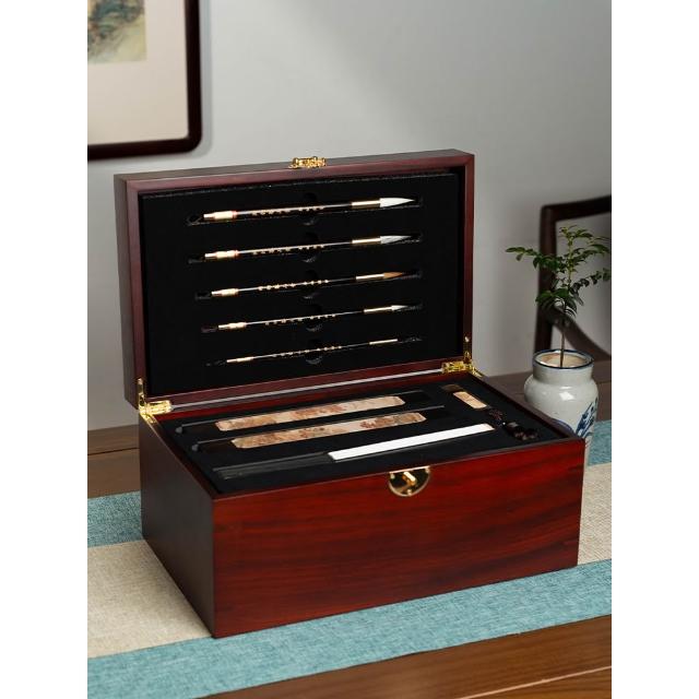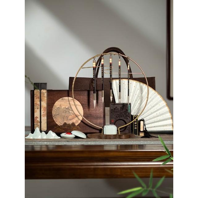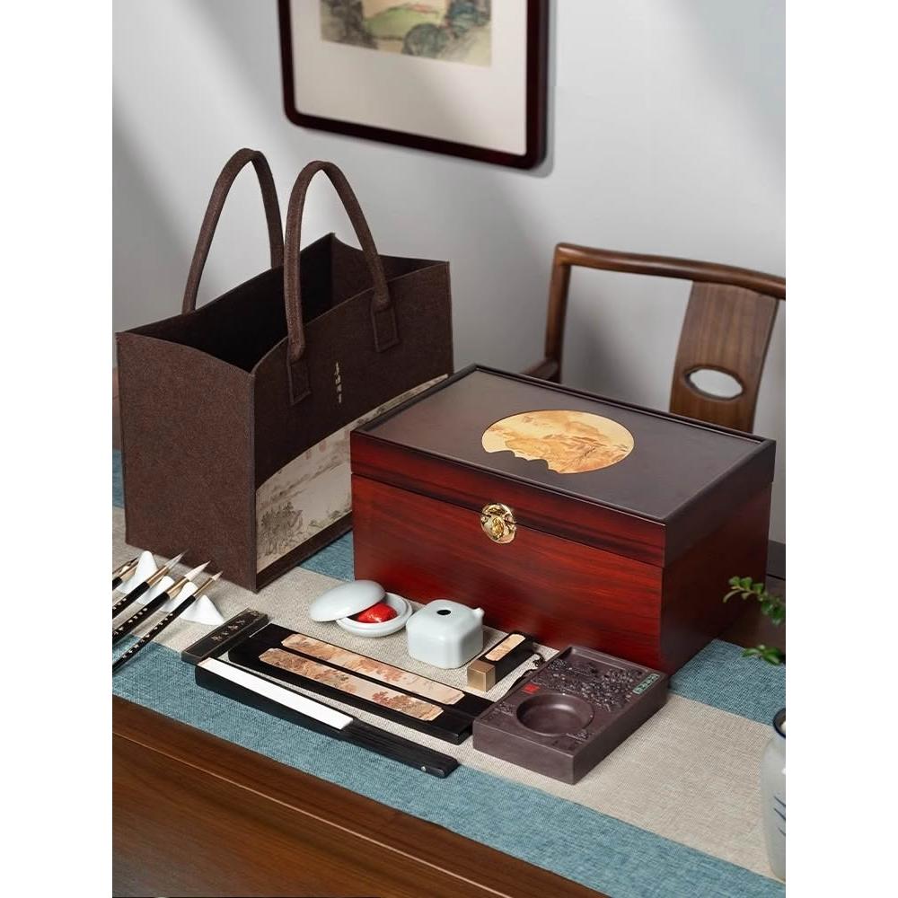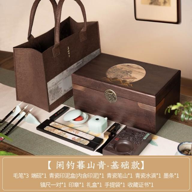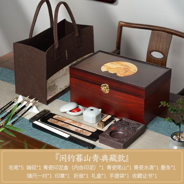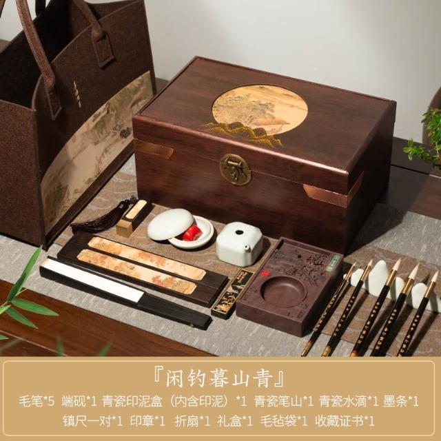 閑釣暮山青文房四寶套裝毛筆禮盒墨塊鎮紙硯臺筆墨紙硯書法套裝專用硯臺端硯徽墨高檔禮盒專業精品