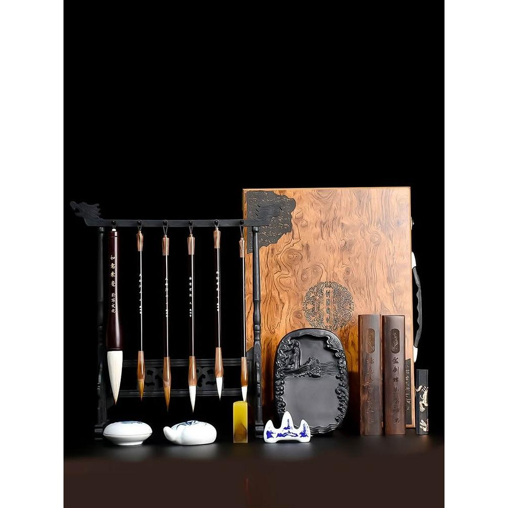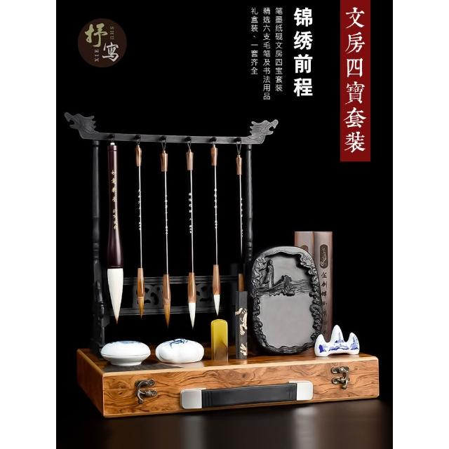 文房四寶套裝筆墨紙硯全套禮盒裝硯臺筆架鎮尺初學者毛筆書法套裝