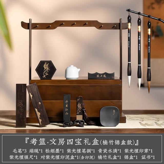 考籃 文房四寶套裝硯臺書法專用墨條墨塊擺件毛筆初學者筆墨紙硯全套筆掛專業級精品套裝禮盒收納盒