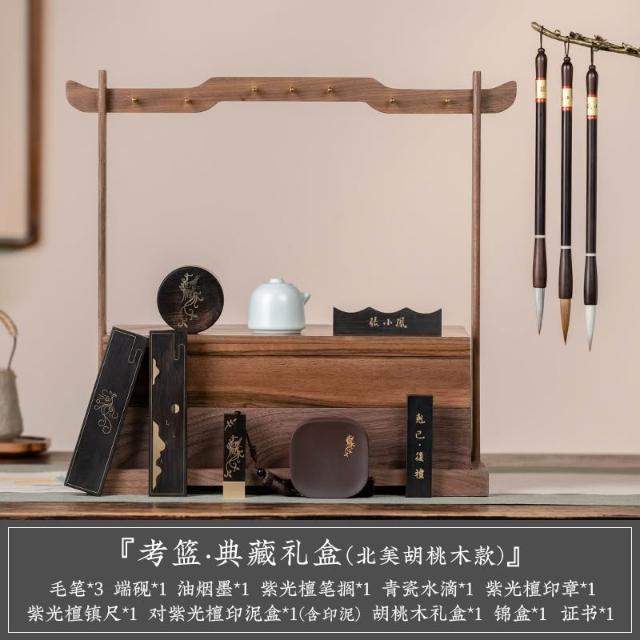 考籃 文房四寶套裝硯臺書法專用墨條墨塊擺件毛筆初學者筆墨紙硯全套筆掛專業級精品套裝禮盒收納盒
