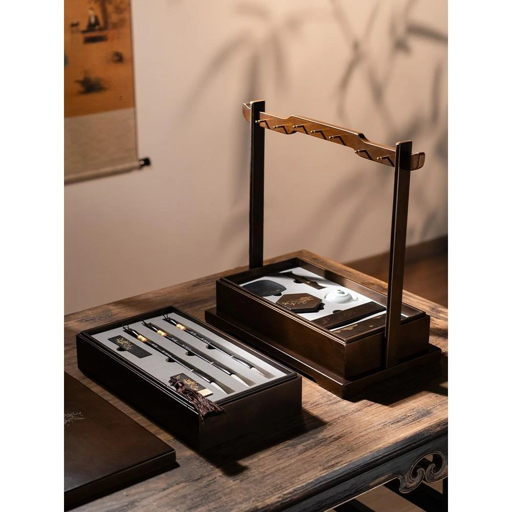 考籃 文房四寶套裝硯臺書法專用墨條墨塊擺件毛筆初學者筆墨紙硯全套筆掛專業級精品套裝禮盒收納盒