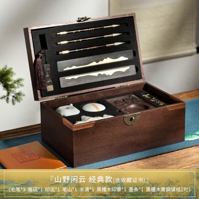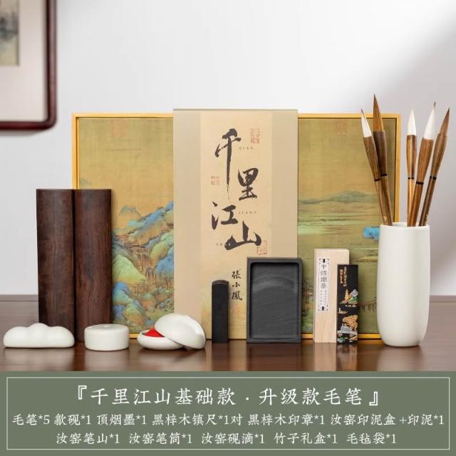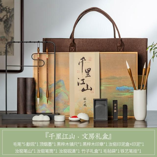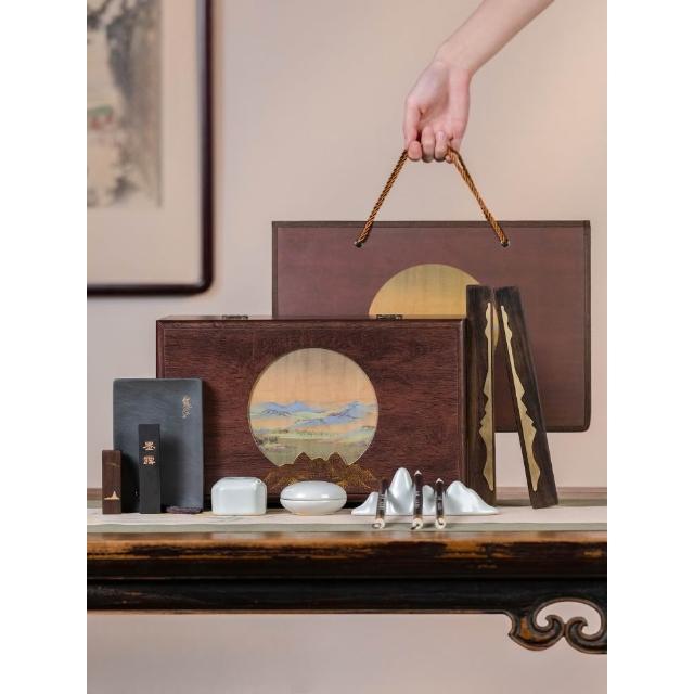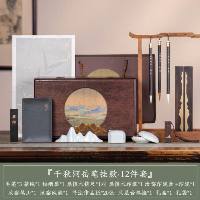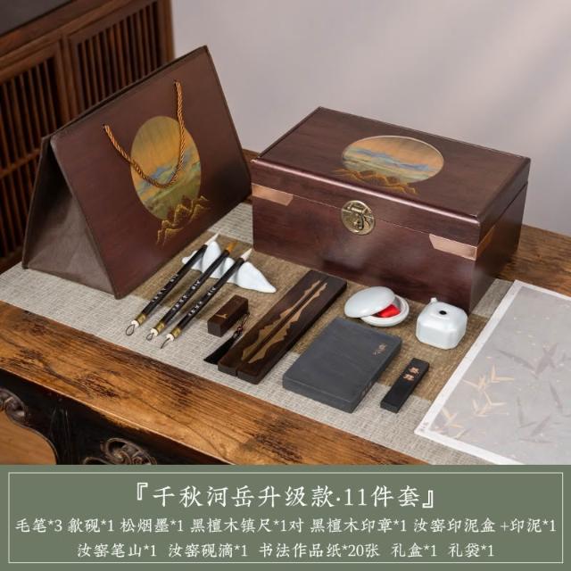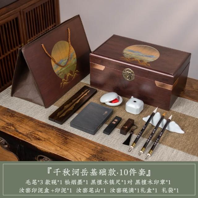 千秋河嶽文房四寶套裝禮盒筆墨紙硯工具書法入門禮盒全套硯臺小學生專用禮物初學者毛筆女生專業擺件
