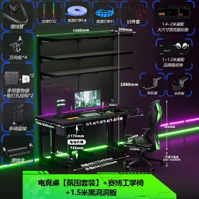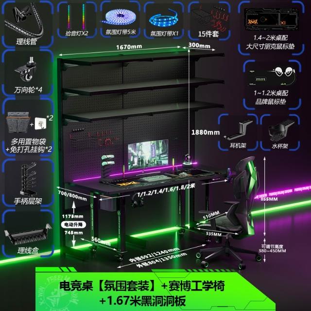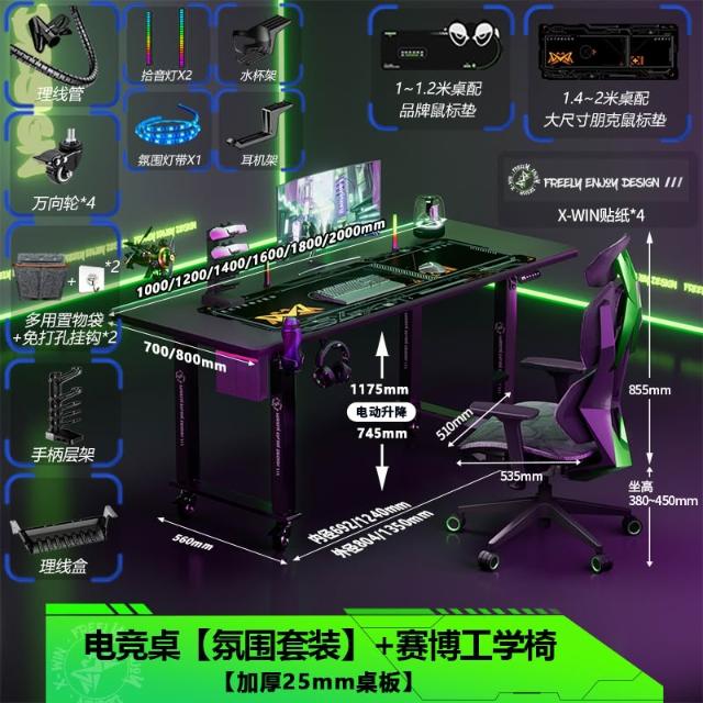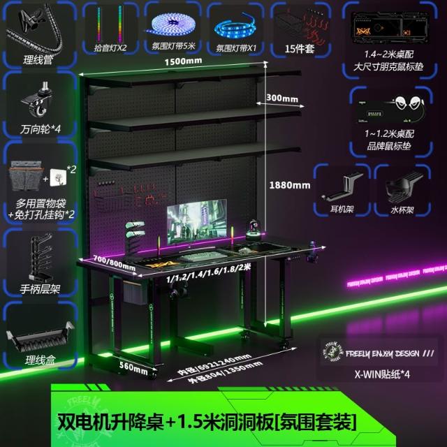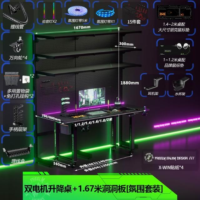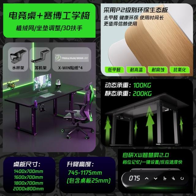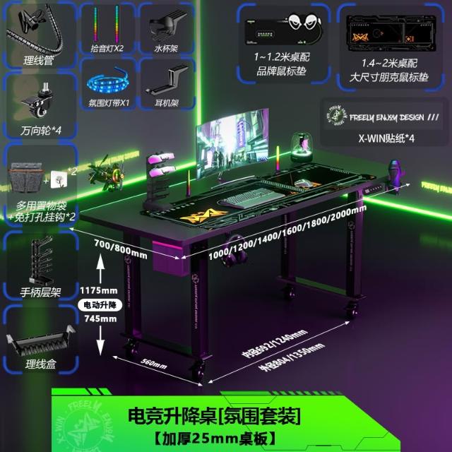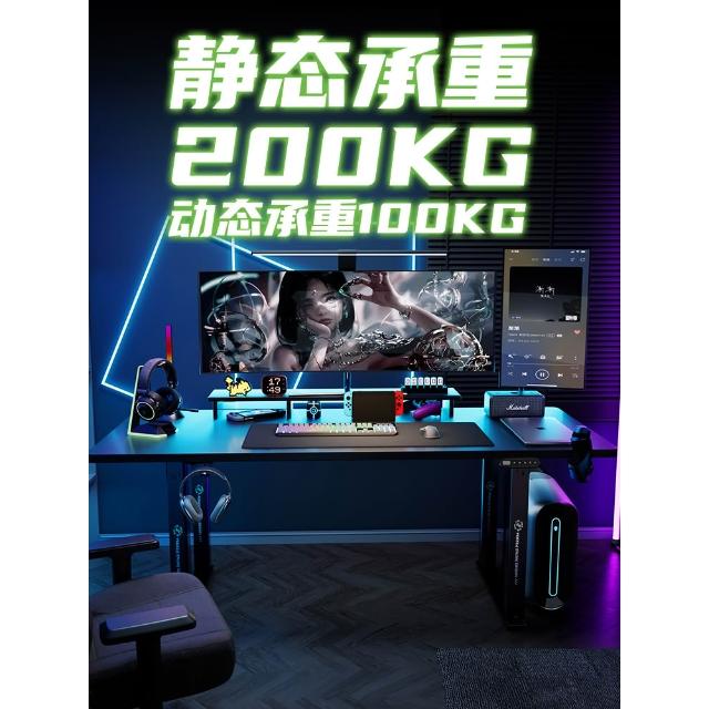 乘勝雙電機四立柱電競桌電動升降桌實木電腦桌主播家用智能書桌