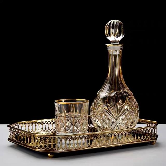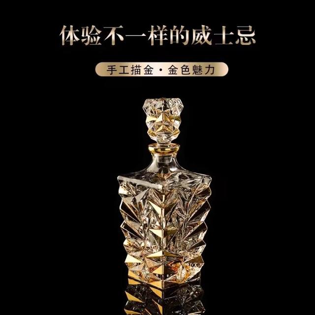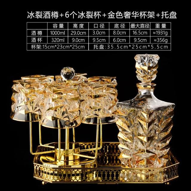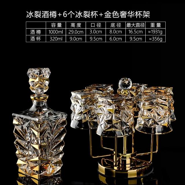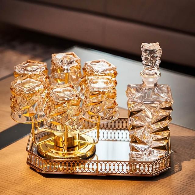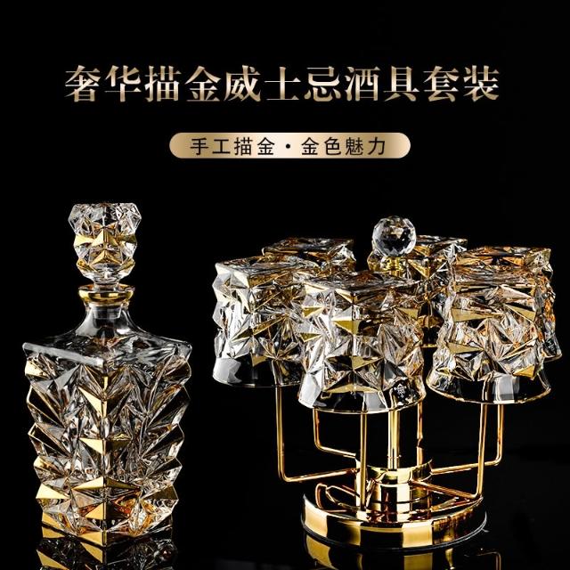 奢華歐式復古酒杯描金水晶玻璃洋酒杯威士忌酒杯高檔酒樽杯架套裝