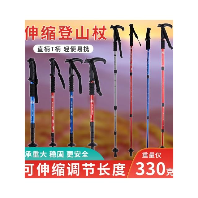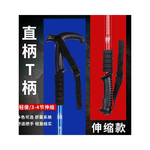 德國戶外正品登山杖T柄手杖鋁合金伸縮杖爬山裝備徒步登山拐杖