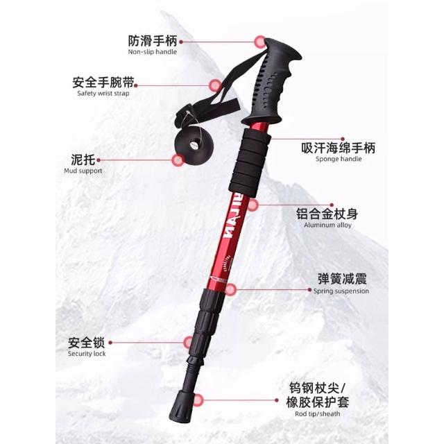 德國專業戶外登山杖伸縮折疊多功能防身棍男女款爬山手杖輕便拐杖