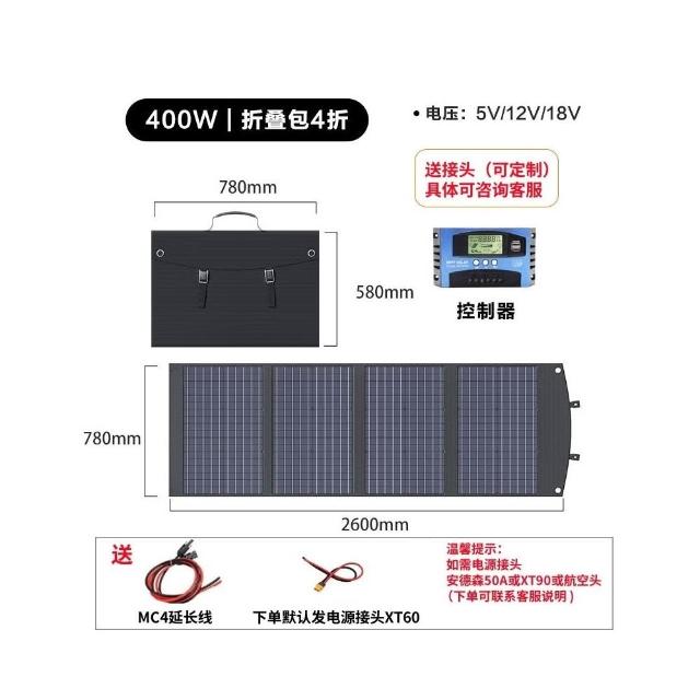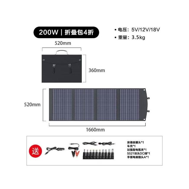 戶外移動電源太陽能折疊充電板200W12V單晶電池板房車發電大功率