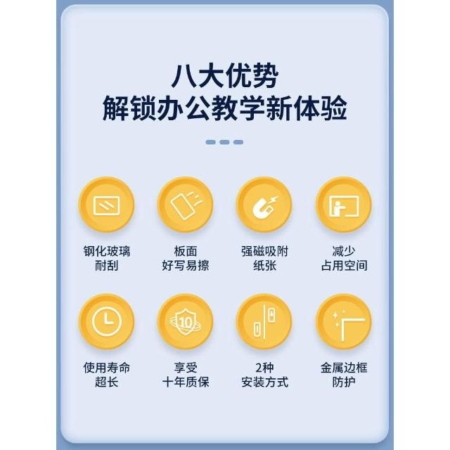 鋼化玻璃白板壁掛式辦公室會議寫字板磁性家用黑板掛牆式教學培訓書寫板牆貼兒童留言板記事板可擦寫畫板