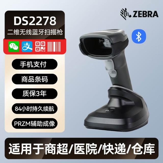 ZEBRA斑馬Symbol DS2208/2278藍牙無線條碼二維碼掃描槍支付寶微信超市收銀倉儲物流藥店有線掃碼槍快遞巴