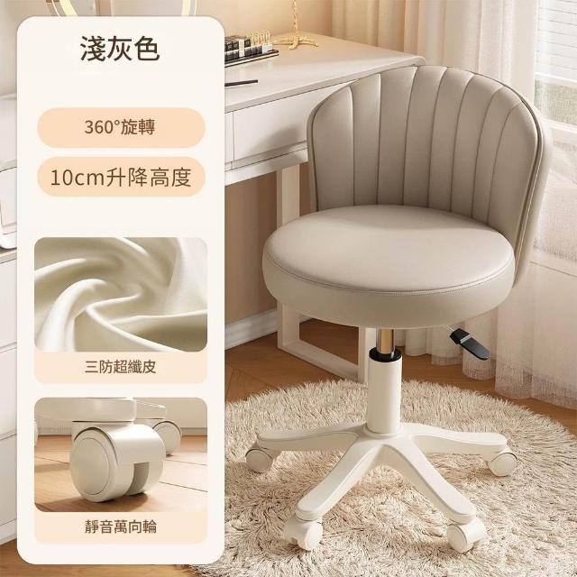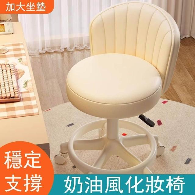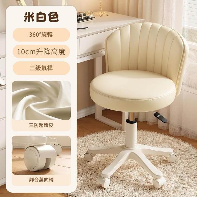 Felsted 菲仕德梳妝臺凳子 奶油風化妝椅(化妝椅 靠背椅 美甲凳 旋轉椅 美容椅 滑輪椅 可旋轉升降)