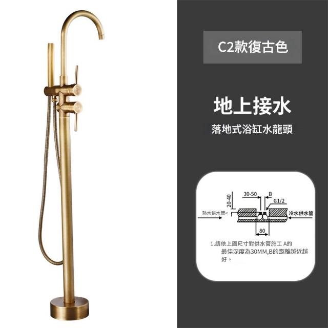 Felsted 菲仕德落地龍頭 落地式浴缸龍頭(浴缸龍頭立式淋浴花灑 木桶缸邊龍頭 全銅仿古冷熱落地式水龍頭)