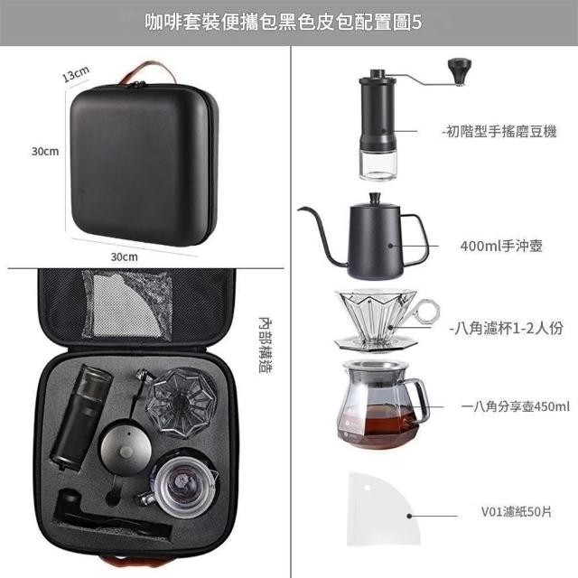 Felsted 菲仕德手沖咖啡組 咖啡手沖套裝(手沖咖啡便攜包 五件組 手沖壺 咖啡濾杯 耐熱玻璃壺 手搖磨豆機)
