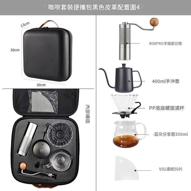 Felsted 菲仕德手沖咖啡組 咖啡手沖套裝(手沖咖啡便攜包 五件組 手沖壺 咖啡濾杯 耐熱玻璃壺 手搖磨豆機)