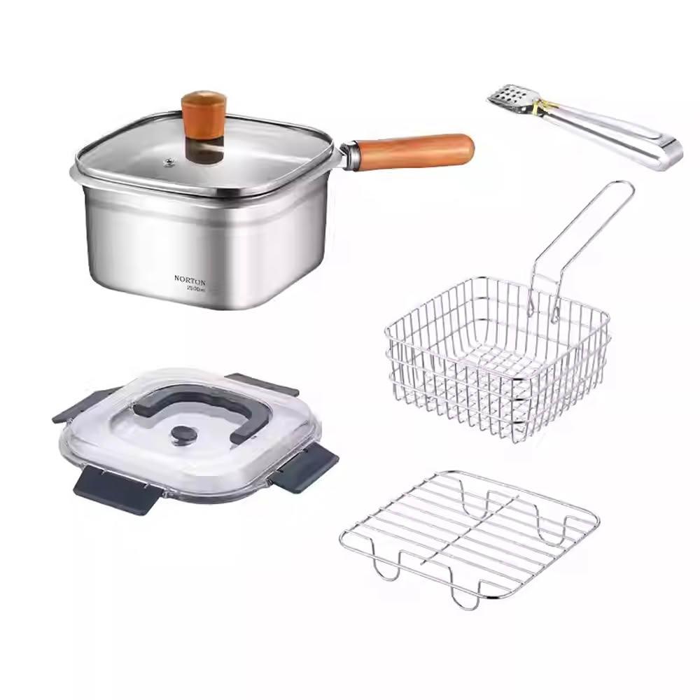 Felsted 菲仕德不銹鋼油炸鍋 加高迷你油炸鍋 戶外鍋露營鍋 家用省油多功能油炸鍋 附油炸籃 炸薯條雞塊 不濺油