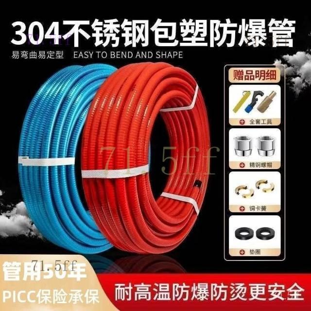 ⚡ 【304不銹鋼管】熱水器通用冷熱水管304包膠不銹鋼波紋管高溫家用4分加厚防爆軟管