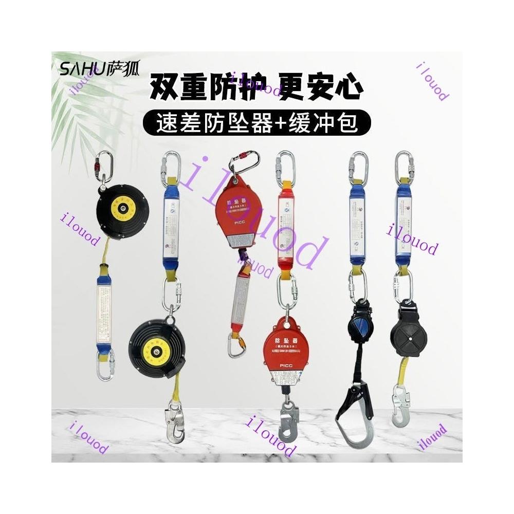 +臺灣出貨 帶緩衝包織帶式安全帶速差防墜器鋼絲防墜器高空作業重物自鎖器
