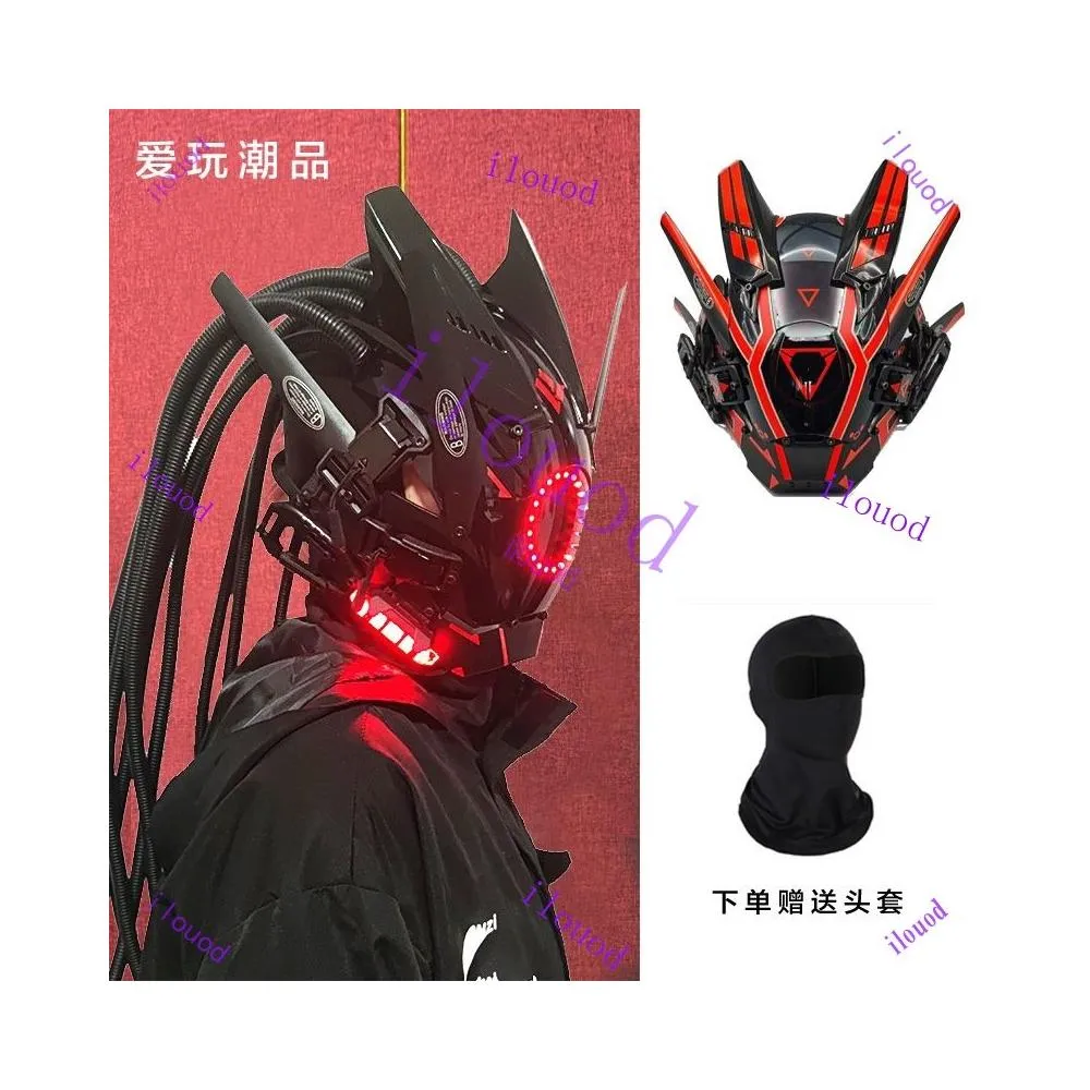 賽博朋克 機械頭盔 鐵血武士 cosplay面罩 機能風 科技感 蹦迪 發光面具 裝飾面具 萬聖節 Cosplay道具