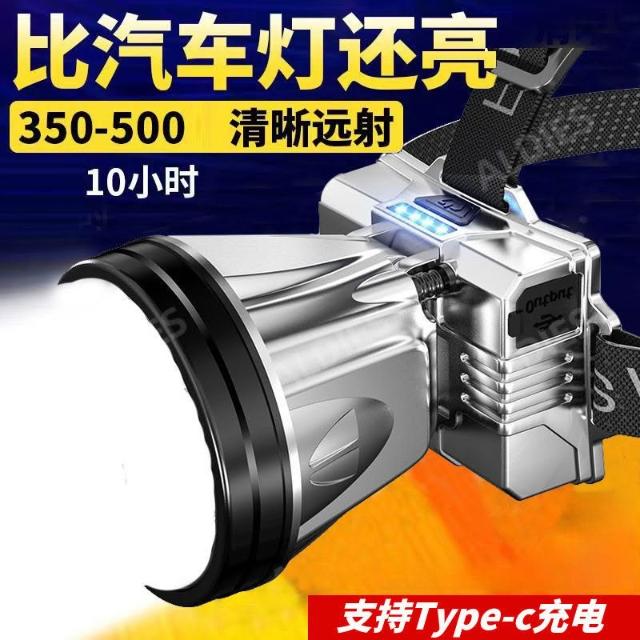 台灣出貨- 探照頭燈 強光 強光頭燈 LED頭燈強光遠射可充電防水超亮頭戴式夜釣燈礦燈超長續航手電筒
