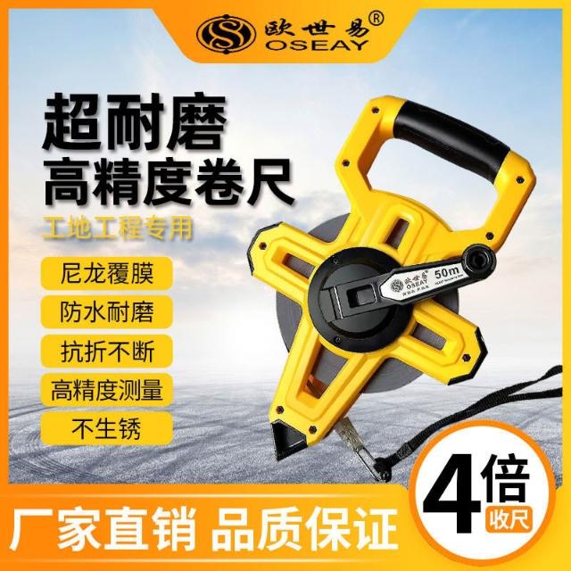 台灣出貨 尼龍覆膜鋼捲尺50米不銹鋼捲尺工程捲尺工地捲尺防水防銹耐磨正品