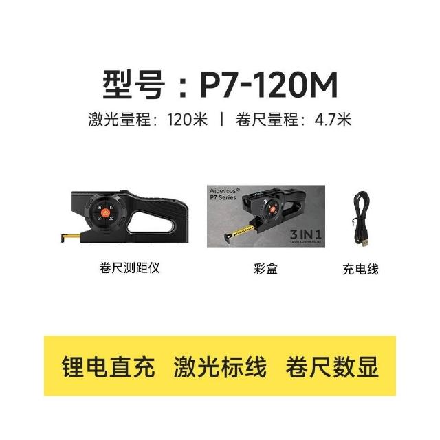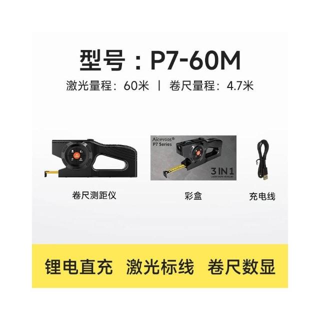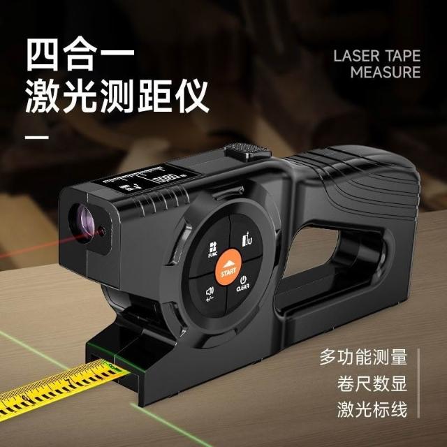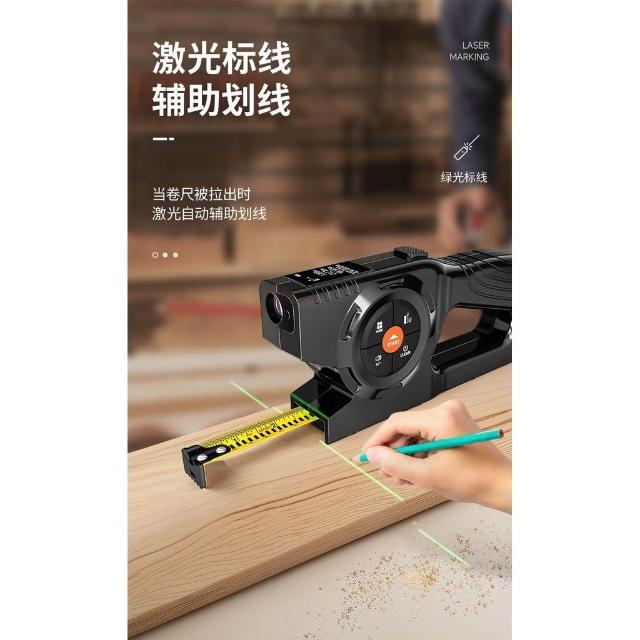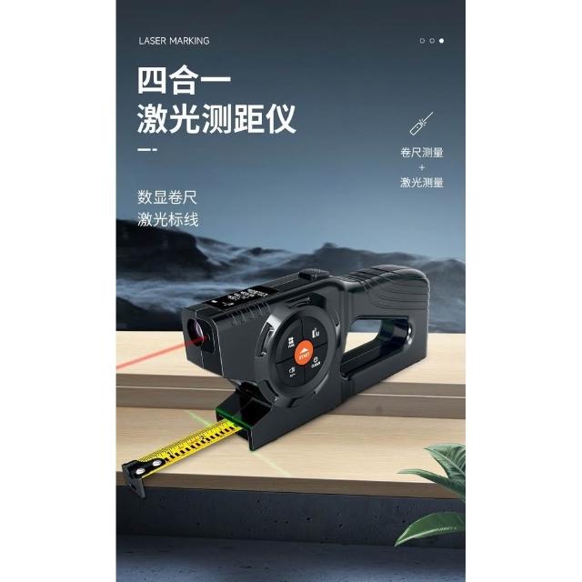台灣出貨 建築木工數顯激光測距儀激光捲尺三閤一智能電子測量尺充電多功能