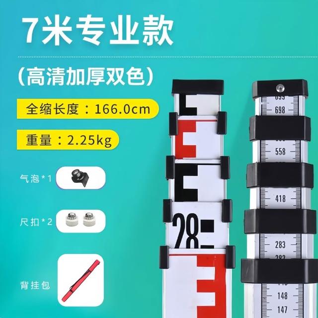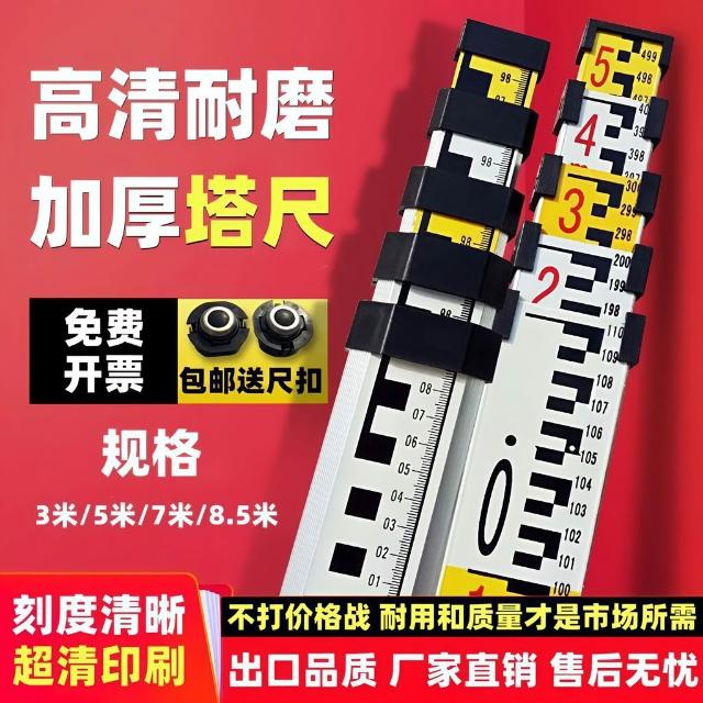 台灣出貨 加厚塔尺5米3米7米水準儀標尺鋁閤金多功能高精度伸縮式水平尺子