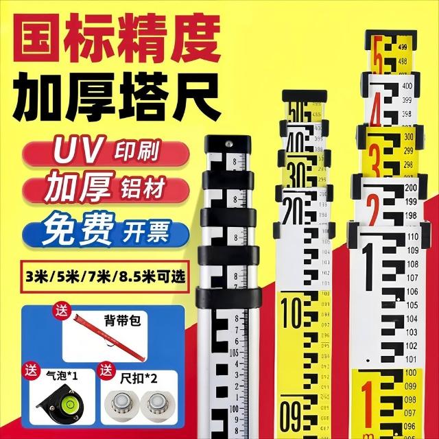 台灣出貨 加厚塔尺5米3米7米水準儀標尺鋁閤金多功能高精度伸縮式水平尺子