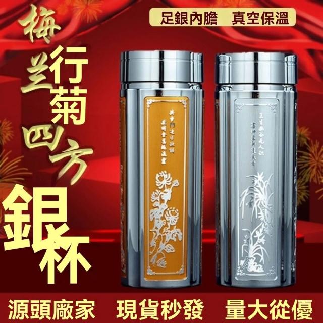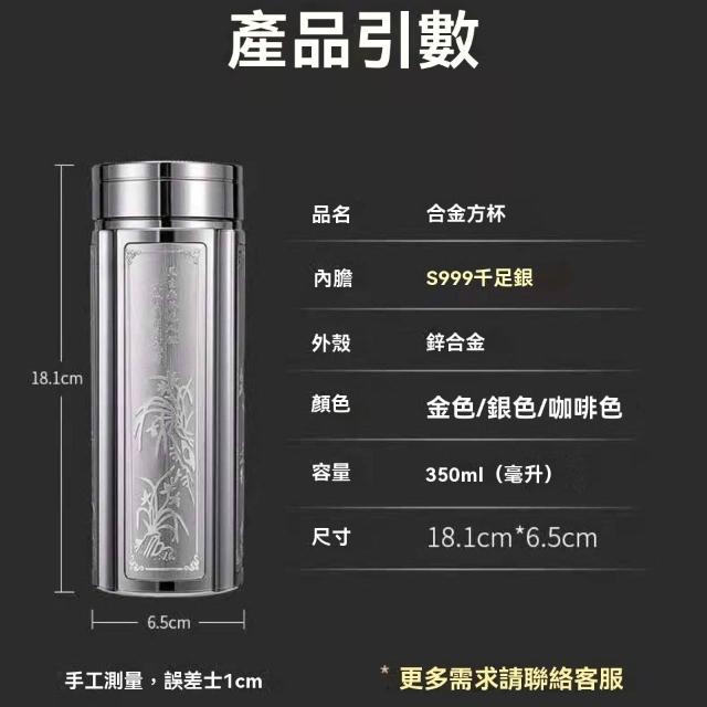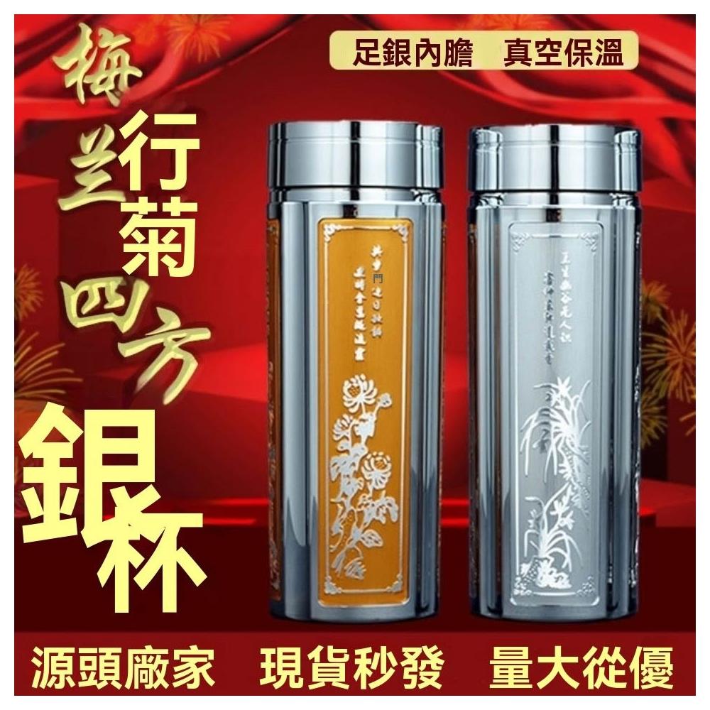 免運+ 台灣出貨 可開統編 【高檔保健杯】S999純銀水杯足銀內膽高級保溫杯男士方形保溫杯