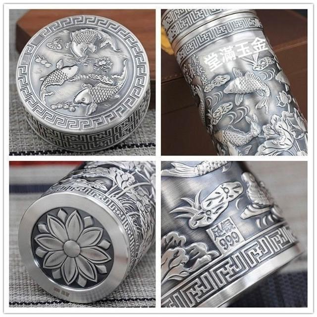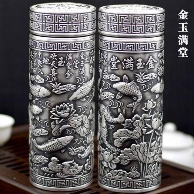 免運+ 台灣出貨 可開統編 999純銀高級銀水杯足銀內膽全銀養生保健茶杯高顏值禮品全銀盃子