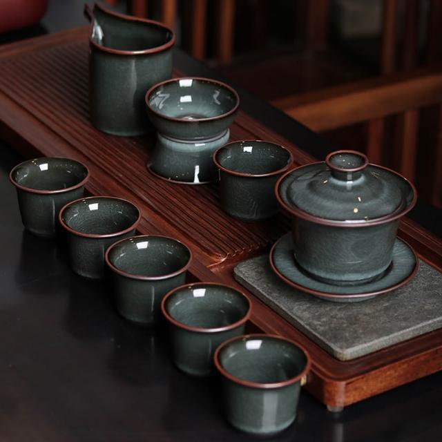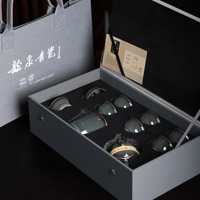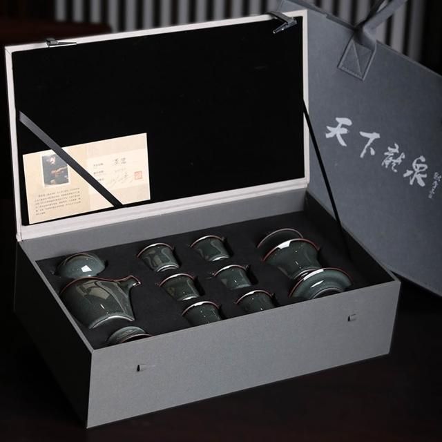 Jimi 集米 龍泉功夫茶具 鐵胎青瓷陶瓷茶壺蓋碗茶杯 復古禮盒辦公室茶具套裝 禮盒裝