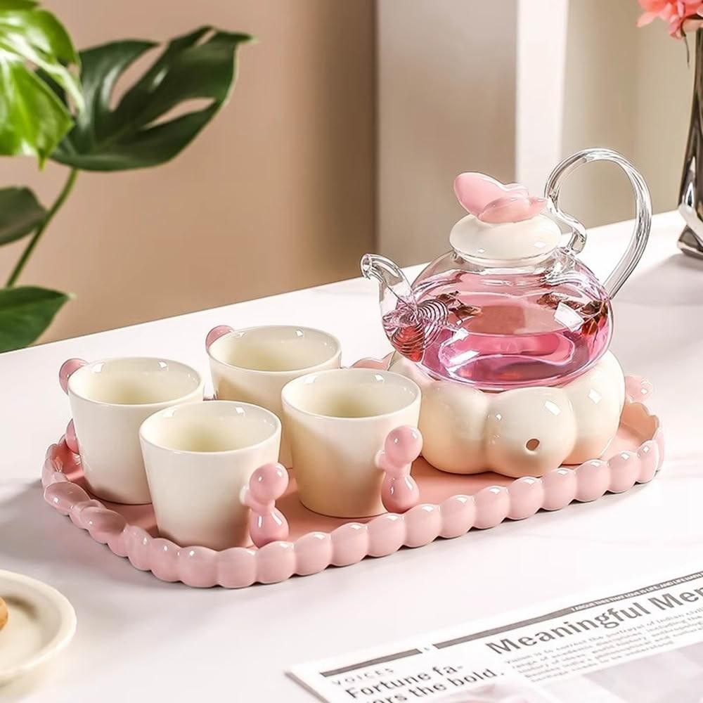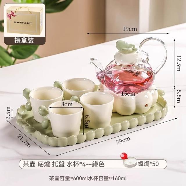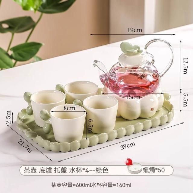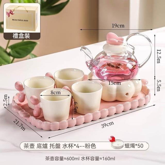 Jimi 集米 高顏值陶瓷花茶壺 蠟燭加熱泡茶壺 下午茶茶具套裝 喬遷新居結婚禮物