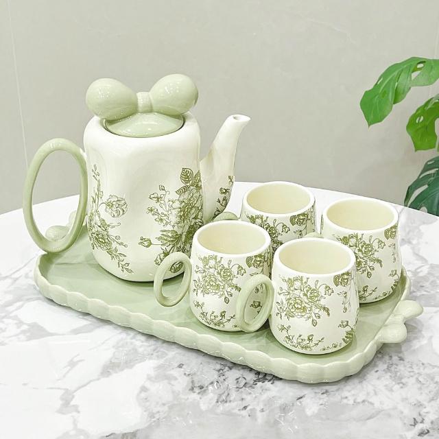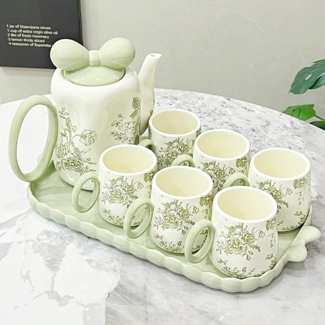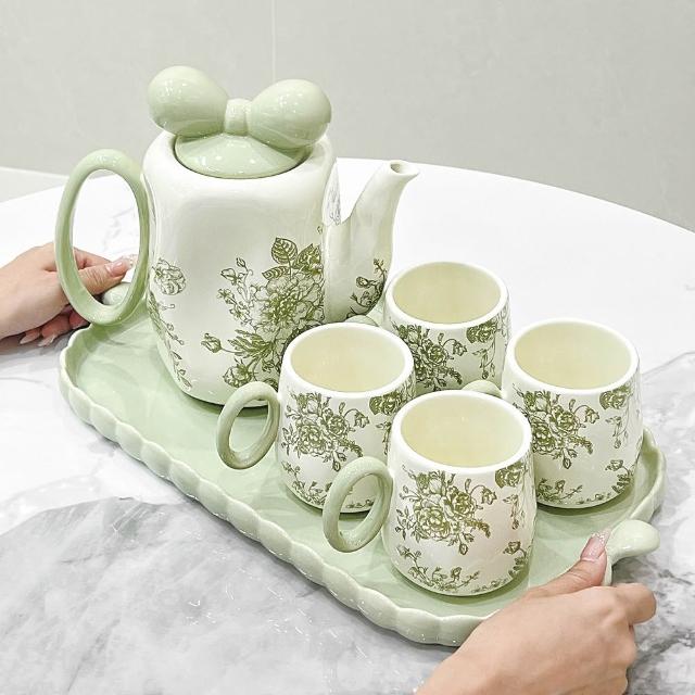Jimi 集米 奶油風陶瓷水杯套裝 下午茶茶具 家用客廳待茶具 客復古花朵水壺茶杯茶具 喬遷新居送人禮物