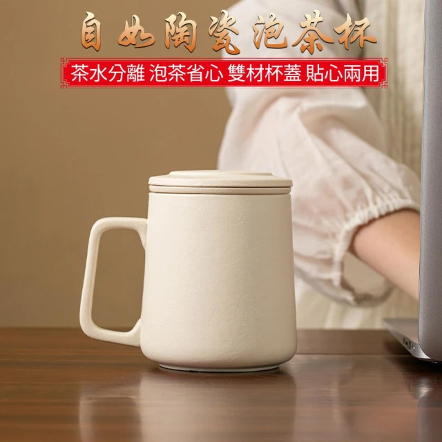 Jimi 集米 茶水分離杯 陶瓷辦公家用泡茶杯 簡約帶蓋過濾茶杯 個人專用泡茶杯子 送人禮品